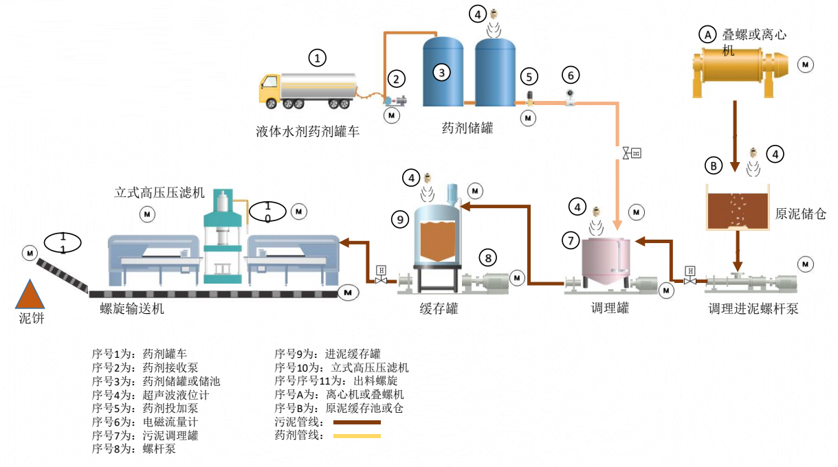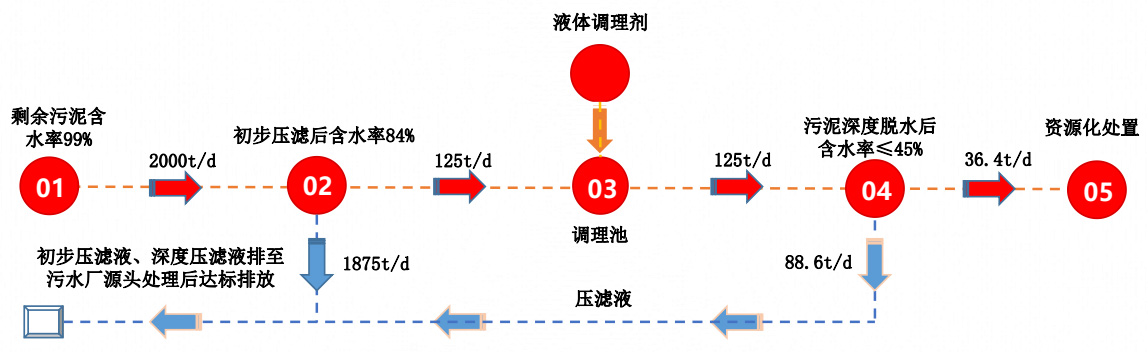 100噸市政污泥減量系統(tǒng)流程及物料平衡圖表 -